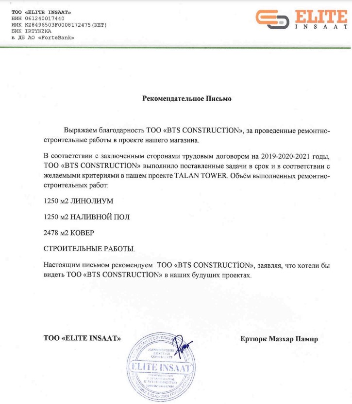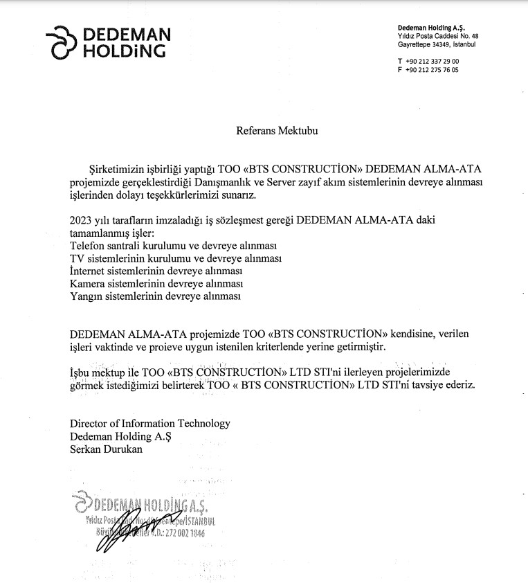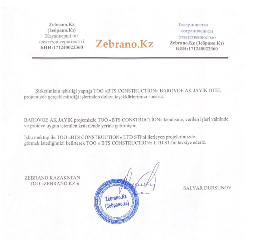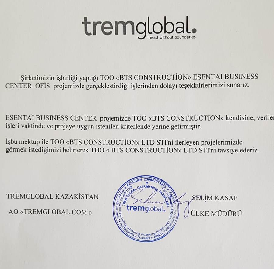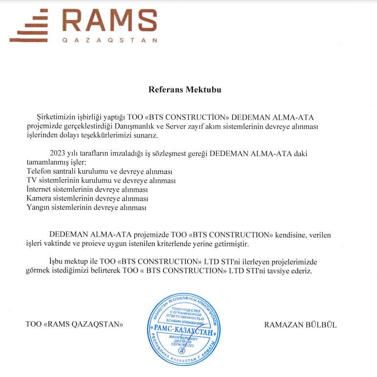 2015 yılından beri Kazakistan ve Kazakistandaki yabancı yatırım projelerinde anahtar teslim işler alarak zamanında ve kalitesinde işleri teslim ettik.